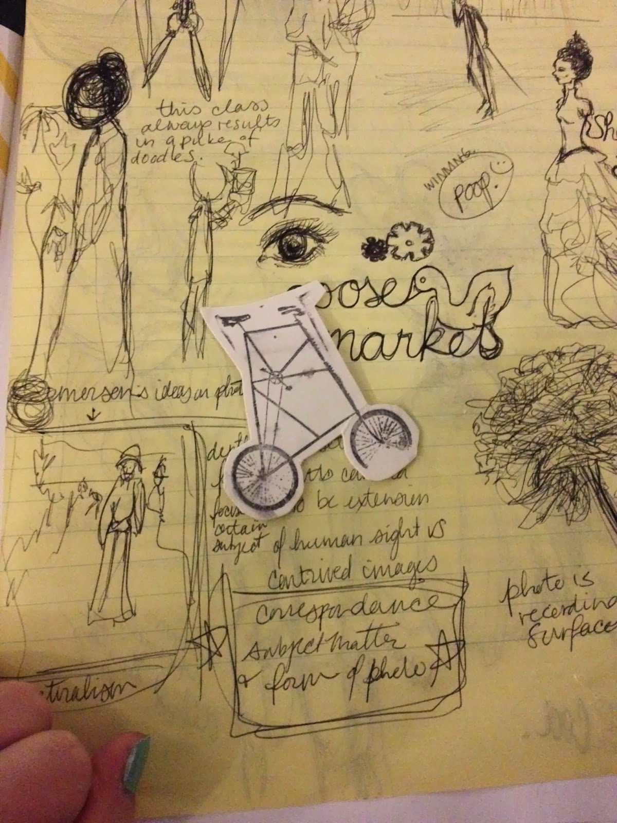 Class resulted in more doodles. Mama came up to bring my fancy printing paper and we got CanCan while I skipped Italian. WE ABSOLUTELY HAVE TO GO FOR BRUNCH WHEN YOU GET BACK. Up until 3am printing for EVA project. Made fair amount of progress.